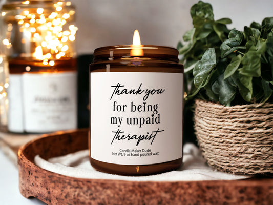 Thank you for being my unpaid therapist, funny gift best friend gift, funny candles, Gifts for her, coworker gift funny gifts christmas gift