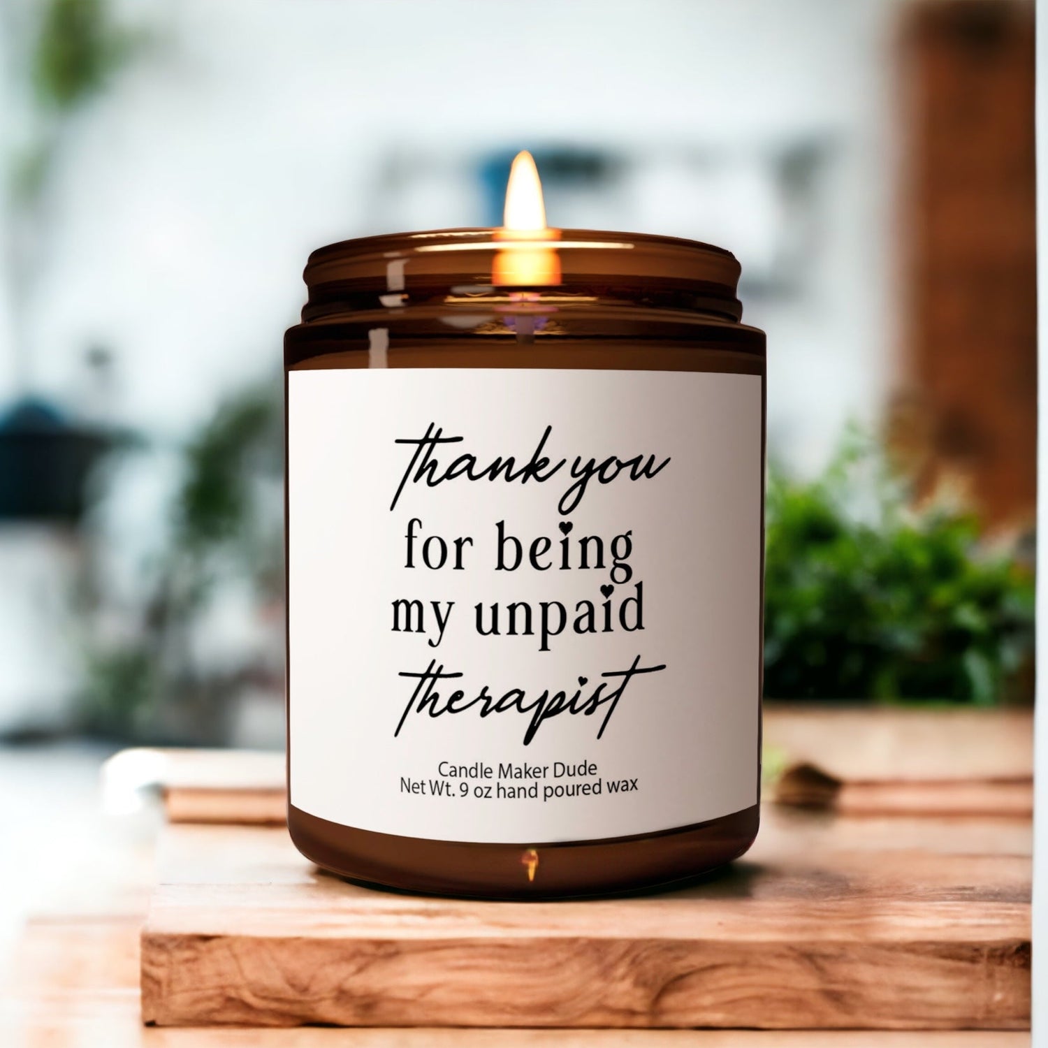 Thank you for being my unpaid therapist, funny gift best friend gift, funny candles, Gifts for her, coworker gift funny gifts christmas gift