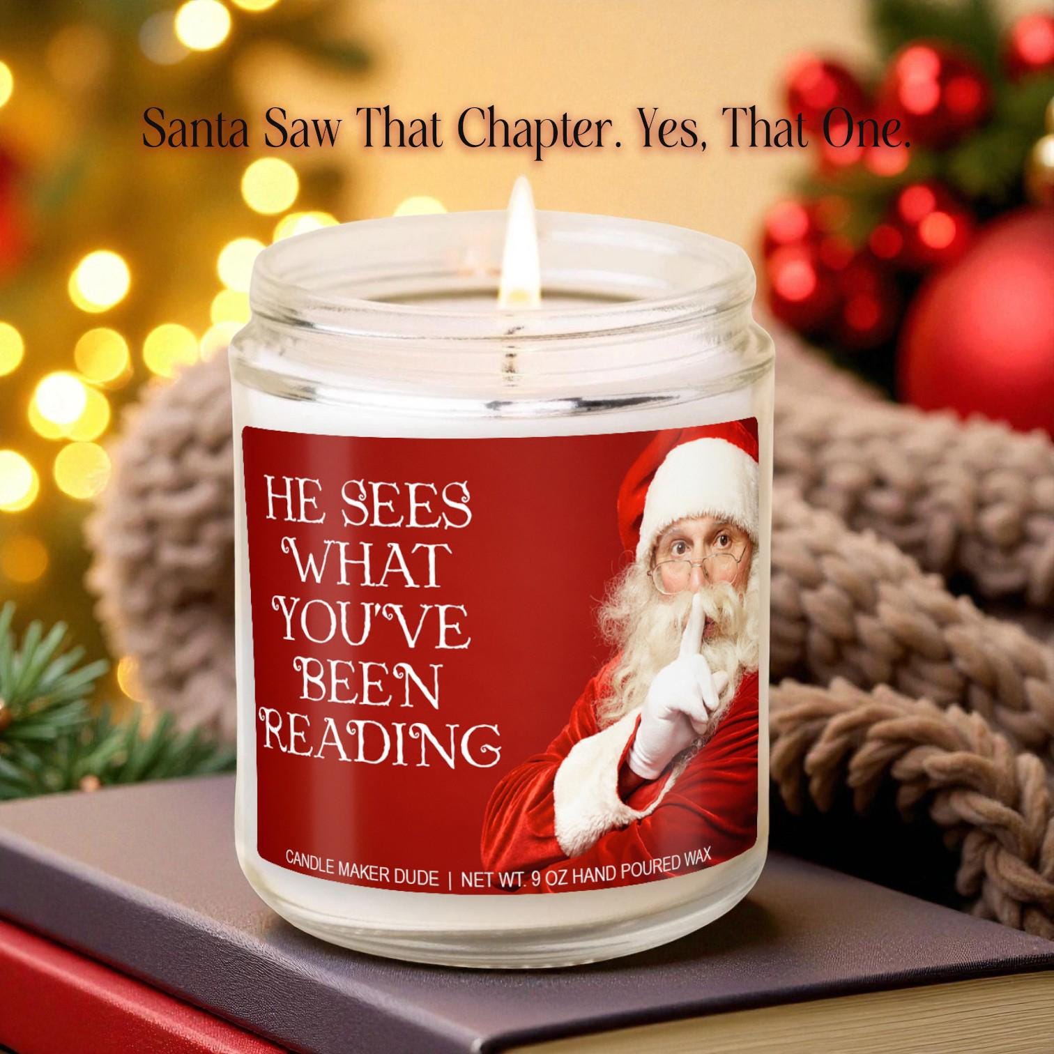 Funny Christmas Candle for Book Lovers | Santa Candle | Gift for Readers & Booktok Fans