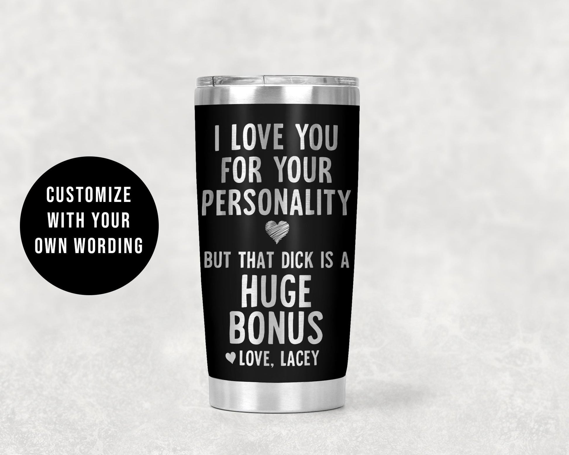 Our "I Love You for Your Personality, But That Dick Is a Huge Bonus" 20 oz tumbler is the perfect choice for your partner or even a friend with a great sense of humor!