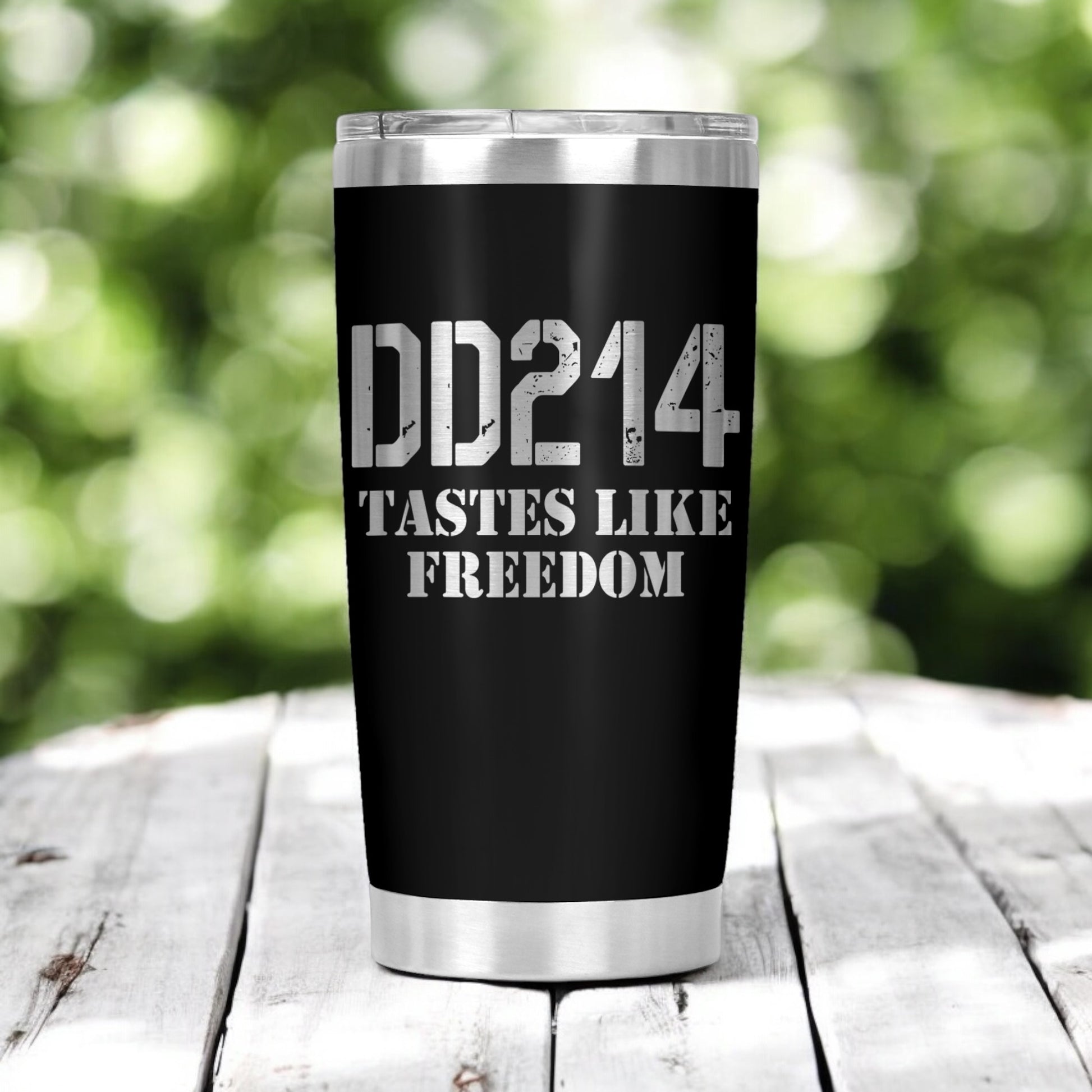 Add the DD214 "Tastes Like Freedom" Tumbler to your collection today and enjoy the taste of freedom with every sip. This tumbler is more than just a cup; it's a tribute to the brave men and women who have served our country.