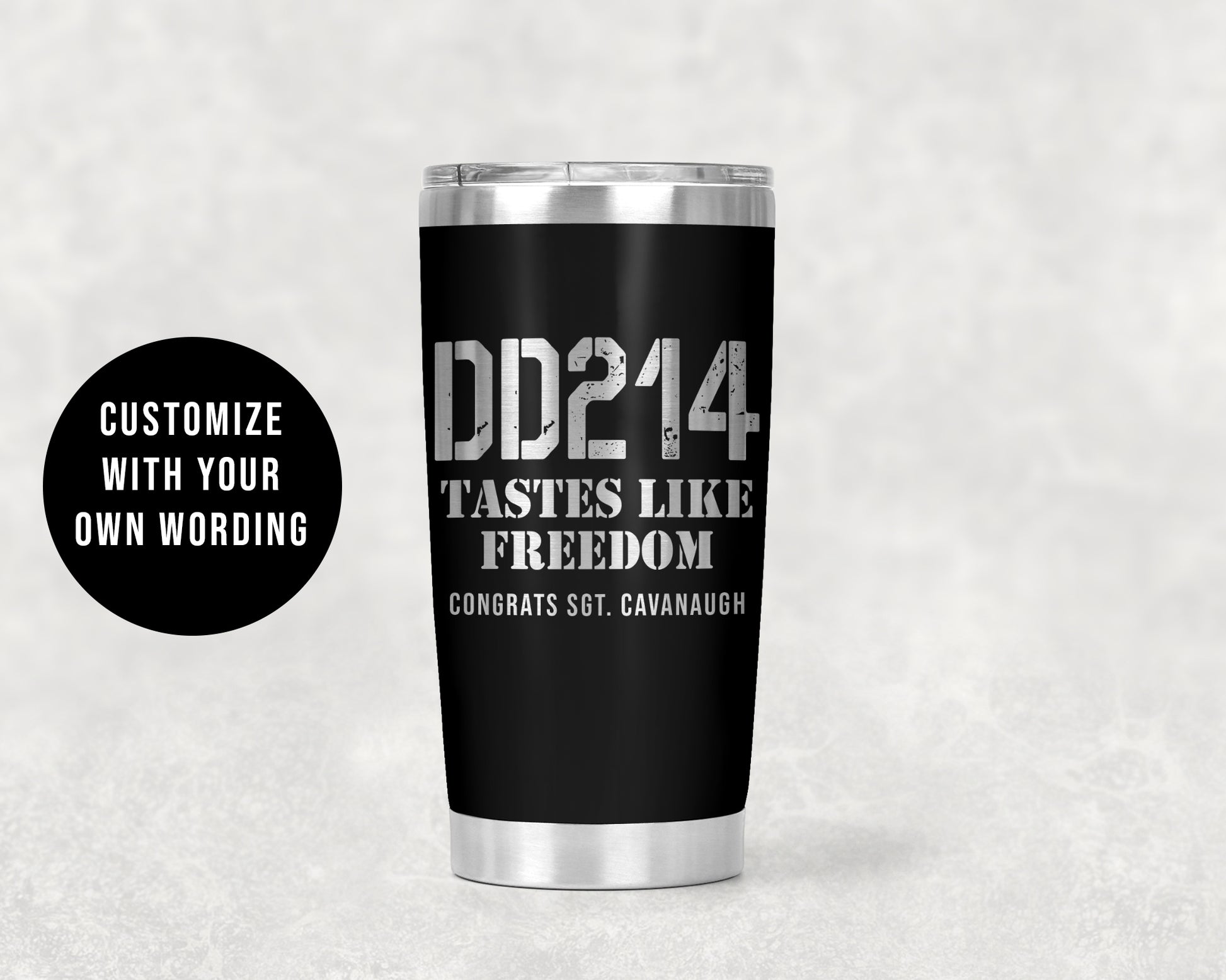 Personalized DD214 Tastes Like Freedom Tumbler, Military Veteran Cup Gift, 20 Oz